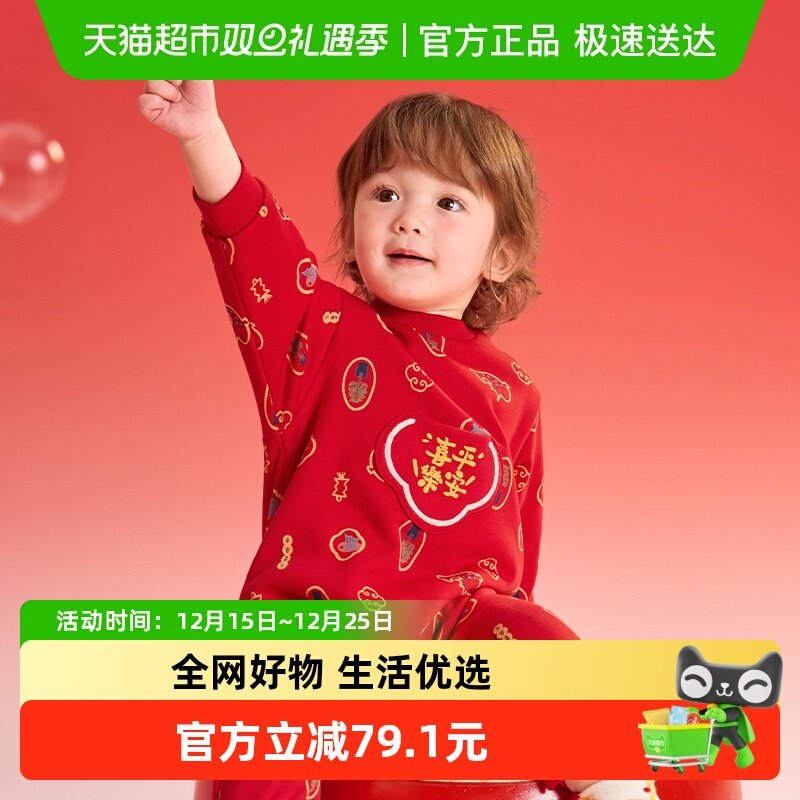 童装/婴儿装/亲子装 巴拉巴拉童装连体衣新生儿爬服2025新年季拜年服加绒