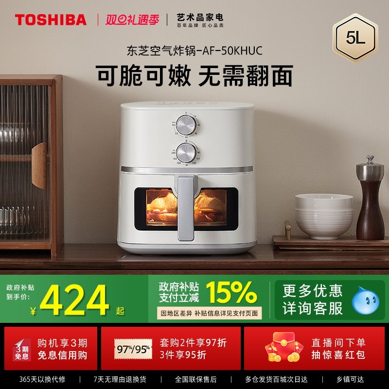 厨房电器 东芝可视化空气炸锅免翻面家用全自动智能大容量多功能电炸锅无油