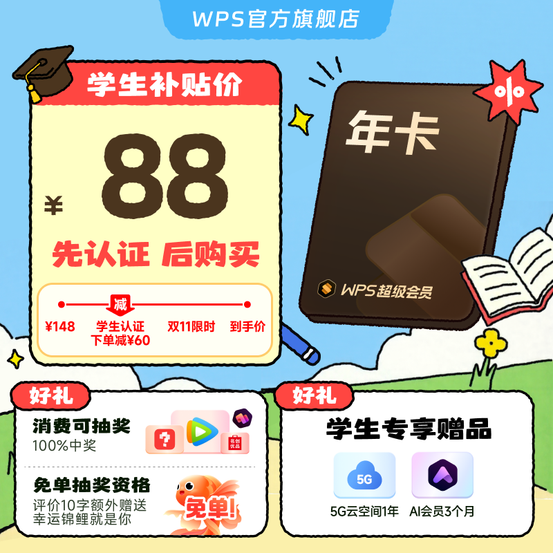 数字生活 【学生专属】WPS超级会员1年 手机号充值 官方正版 先认证再下单