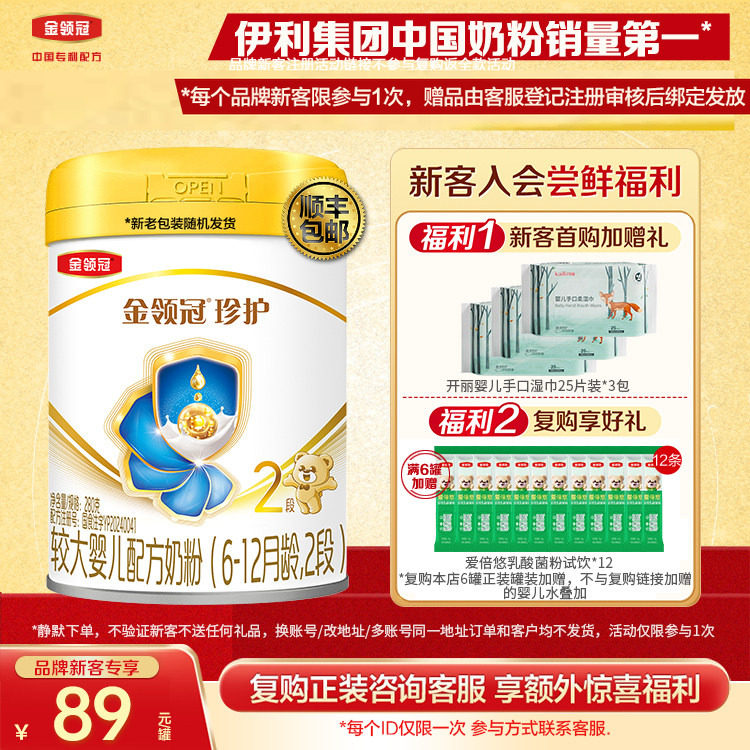 婴童奶粉 新客首购送好礼】伊利金领冠珍护2段6-12个月280g婴幼儿牛奶粉