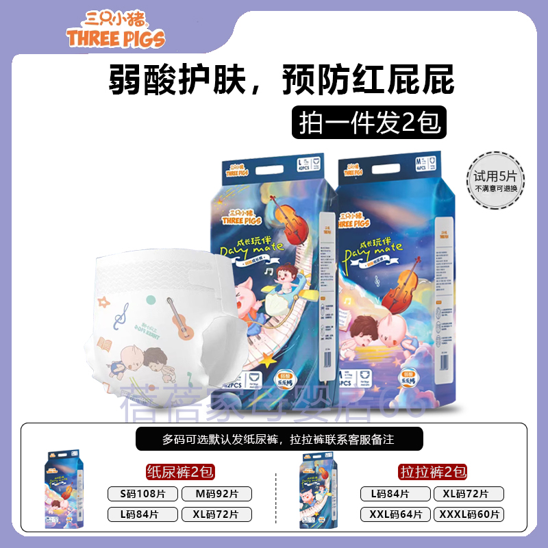 婴童尿裤 三只小猪大童纸尿裤冬季款一体式全包拉拉裤男宝宝专用夜用尿不湿