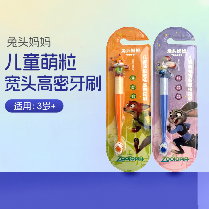 婴童洗护 免头妈妈儿童牙刷萌粒宽头高密牙刷尼克款朱迪款多规格