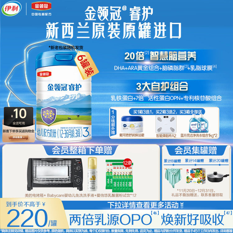 婴童奶粉 伊利母婴旗舰店正品金领冠新国标睿护3段1-3岁幼儿奶粉800g*6罐