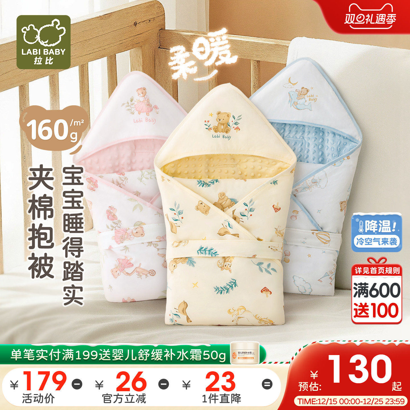婴童用品 拉比婴儿抱被加厚保暖160g夹棉秋冬初生宝宝豆豆绒安抚盖毯防惊跳