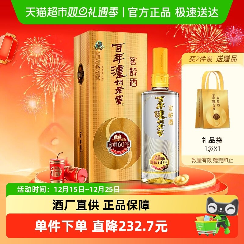 酒类 泸州老窖窖龄60年浓香型白酒52度500ml 单瓶装