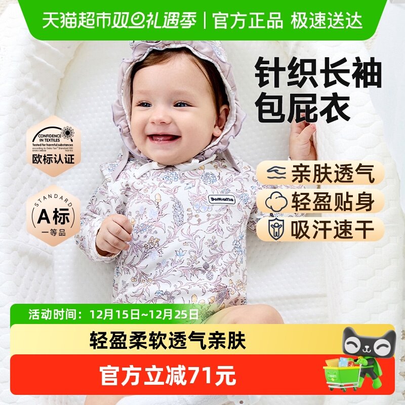 童装/婴儿装/亲子装 【清仓】babylove婴儿包屁衣纯棉睡衣春秋季宝宝绑带三角哈衣爬服