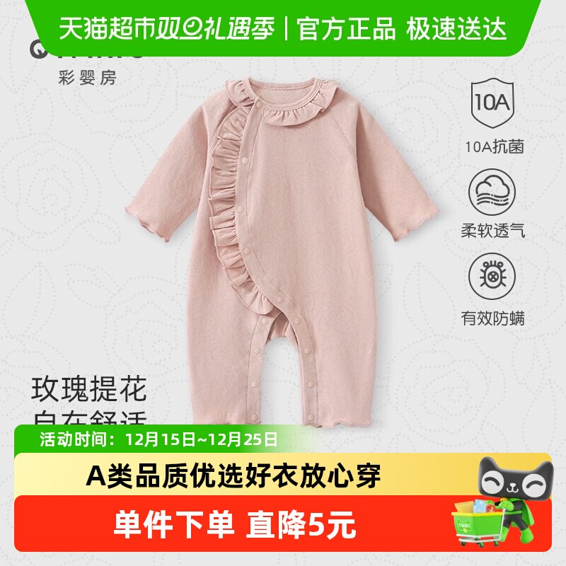 童装/婴儿装/亲子装 彩婴房婴儿连体衣秋冬新款女宝衣服外出秋装新生幼儿哈衣爬服洋气