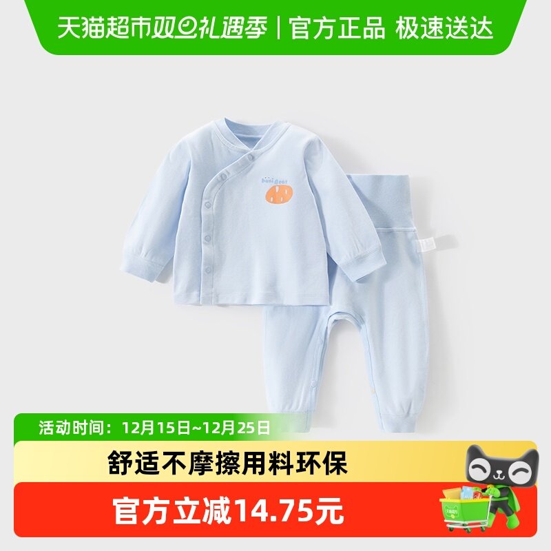 童装/婴儿装/亲子装 欢喜小熊宝宝春秋内衣套装打底免脱衣服婴儿秋衣秋裤高腰护肚衣服