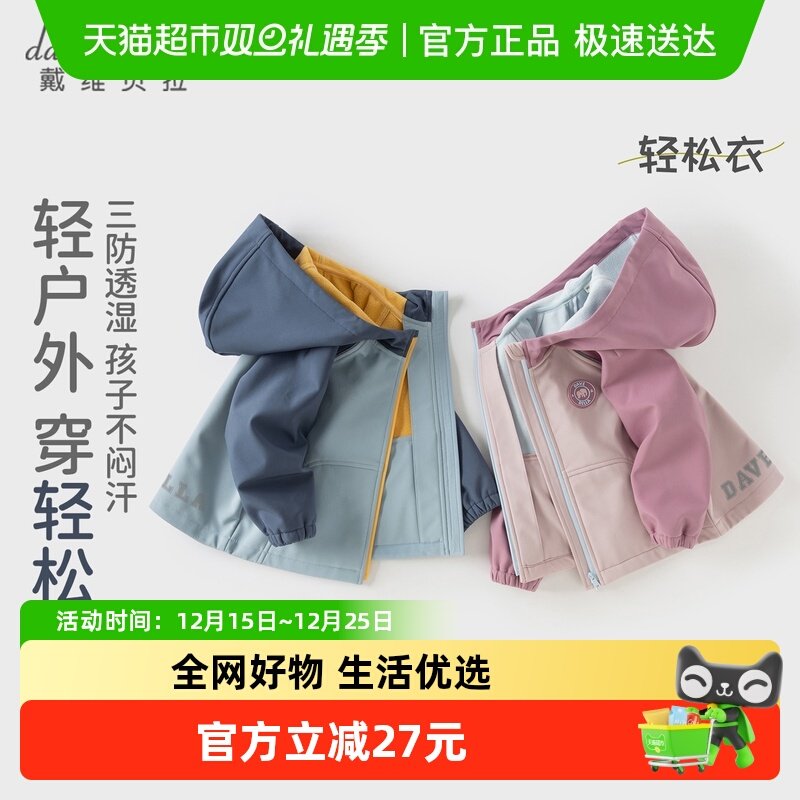 童装/婴儿装/亲子装 戴维贝拉儿童三防冲锋衣2025秋装新款男童户外防风衣宝宝外套童装