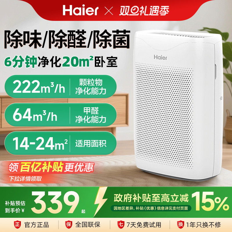 生活电器 海尔空气净化器家用除甲醛除烟味室内净化机小型新风清新器