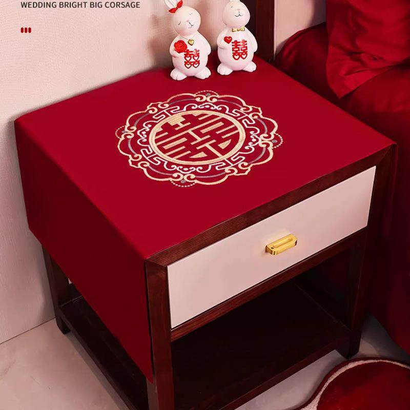 节庆用品/礼品 中式结婚床头柜盖布喜字红色桌布喜庆婚房装饰布置高级感柜布