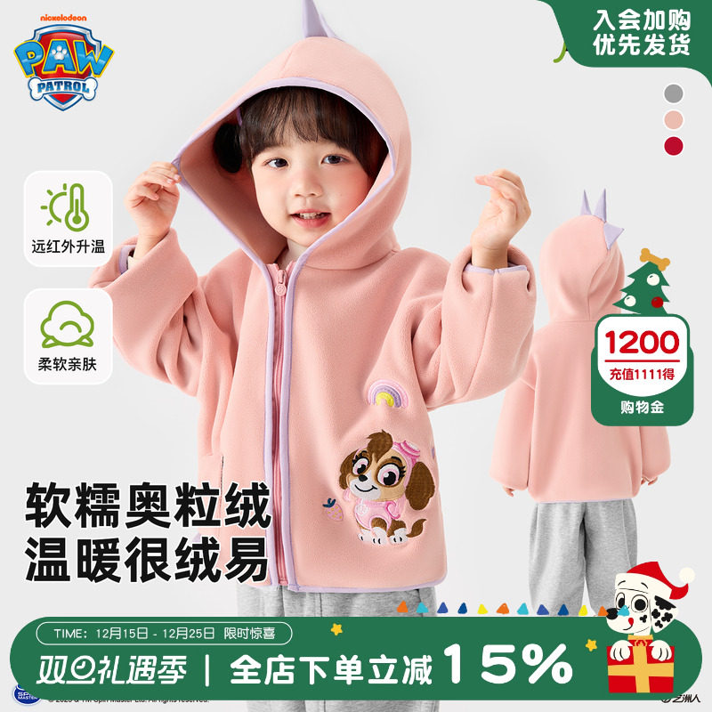 童装/婴儿装/亲子装 汪汪队女童摇粒绒外套秋冬加绒女宝宝开衫外套女孩粉色可爱上衣冬
