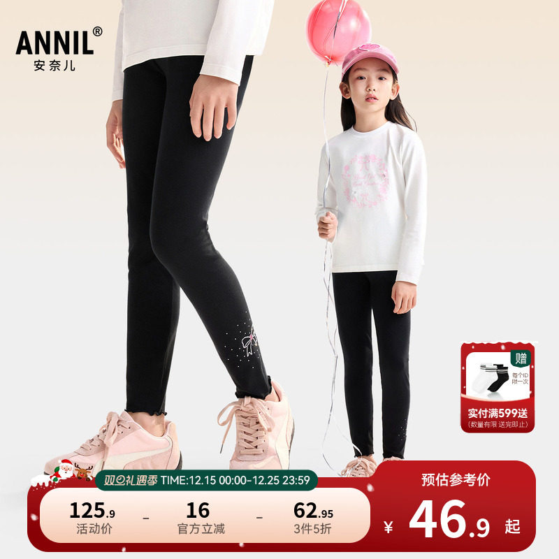 童装/婴儿装/亲子装 安奈儿童装女童针织打底裤2025秋新款弹力贴身黑色保暖内搭甜美