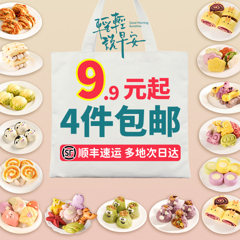粮油调味/速食/干货/烘焙 【9.9起4件包邮】小安饱贝果蔬馒头卡通包子花卷手工营养早餐速食