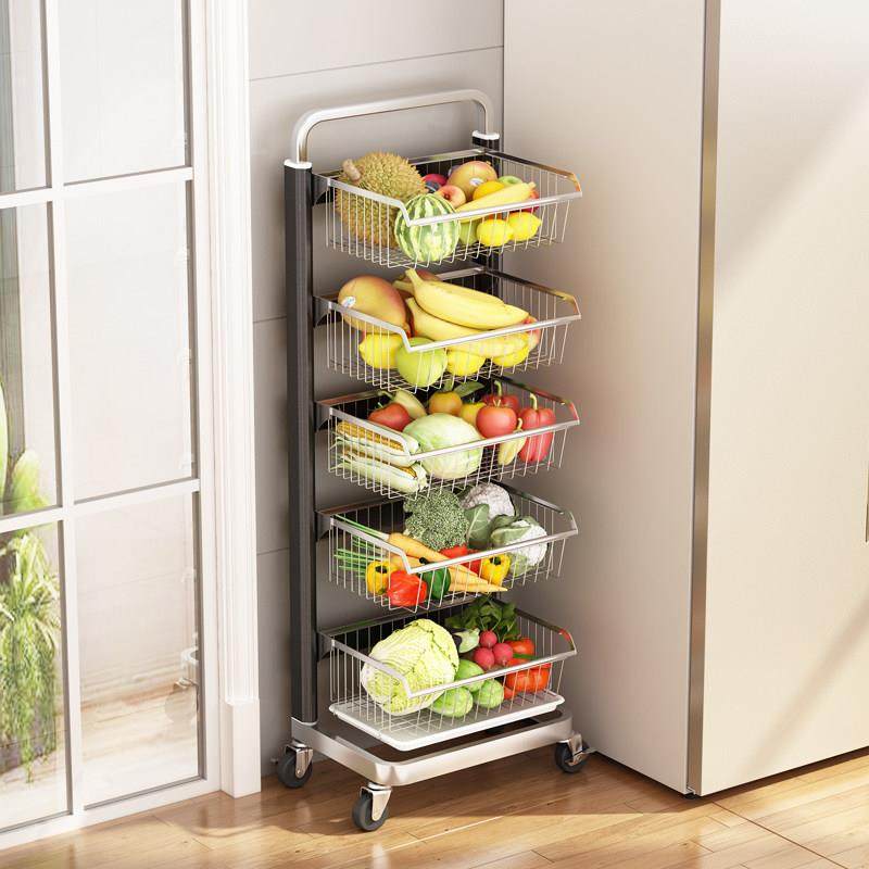 厨房/烹饪用具 太空铝厨房蔬菜置物架落地多层家用水果菜篮子放菜收纳架子可移动