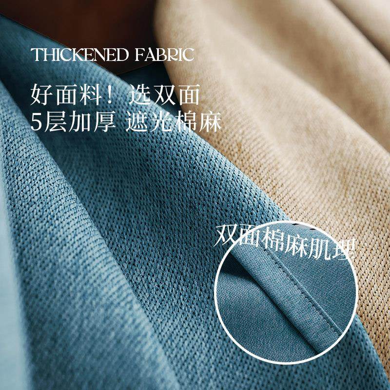居家布艺 加厚棉年麻窗帘全QJD-SMML0遮光卧室20214新款0不透光防光遮阳帘