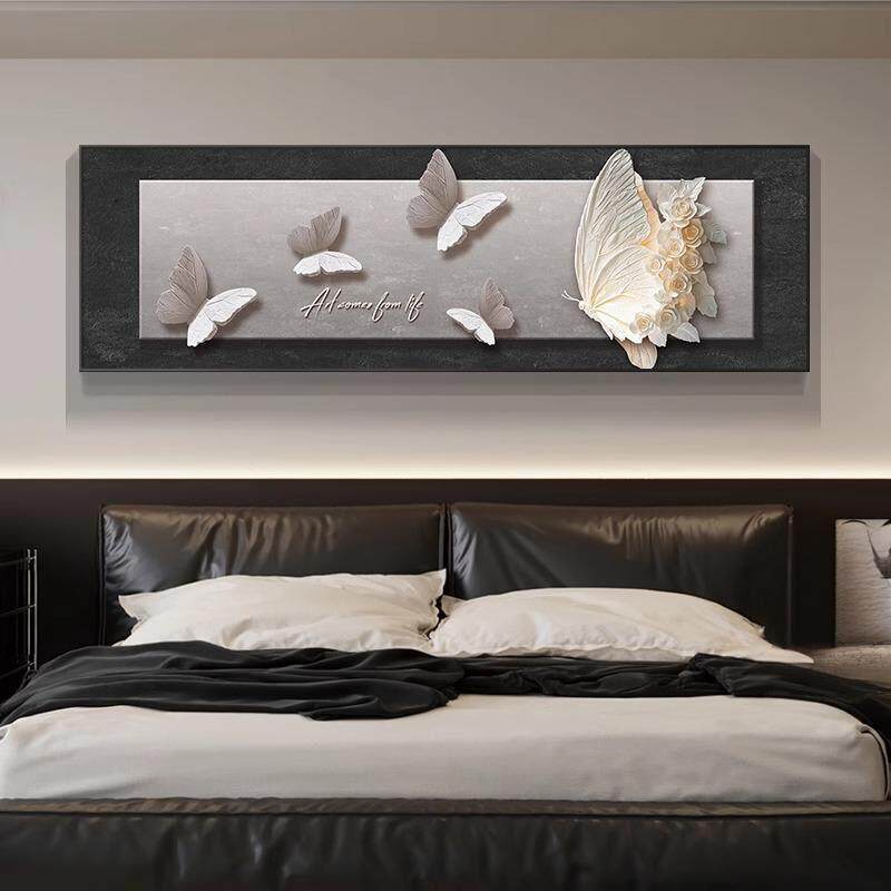 家居饰品 现约代简蝴蝶客厅背墙装饰画高级景感黑白卧室床头挂画侘风寂FH-0