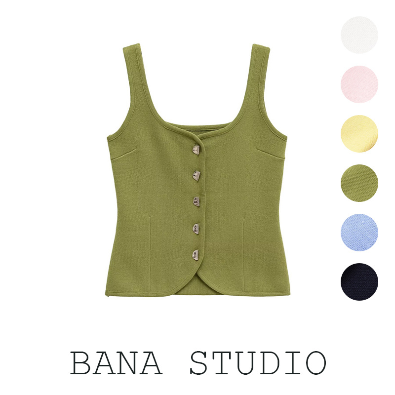 女装/女士精品 BANA西班牙外贸出口尾单绿色方领针织背心女马甲叠穿收腰显瘦坎肩