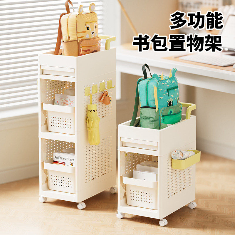 收纳整理 书包置物架书本收纳层架神器移动小推车落地家用带轮多层书架滑轮