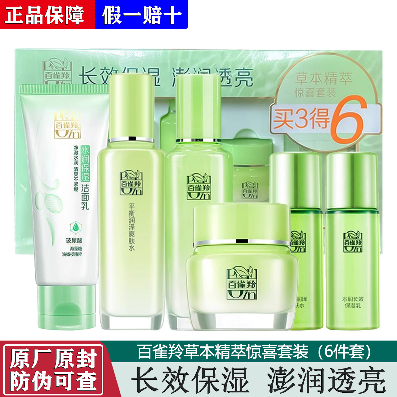 美容护肤/美体/精油 百雀羚草本精粹惊喜套装洁面水乳霜 保湿补水套装6件套正品护肤品