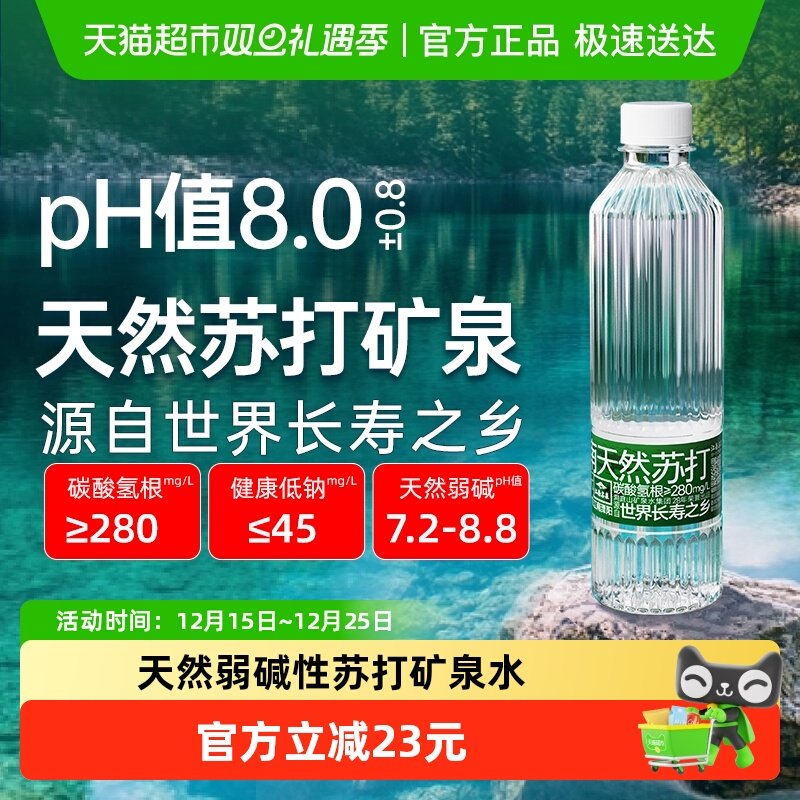 咖啡/麦片/冲饮 洞庭山江南名泉弱碱性天然苏打矿泉水450ml*24瓶小瓶装饮用水便携
